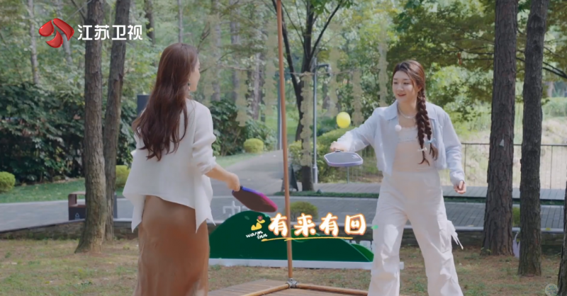 嘉宾黄圣依在挥拍间展现优雅与力量的融合,击球落点精准、动作流畅;奥运冠军陈梦则迅速适应节奏,展现出职业选手的扎实功底与控场能力;蒋梦婕与林晓从初次尝试到渐入佳境,笑容随每一记好球绽放,展现出运动带来的纯粹快乐。匹克球作为一项融合网球、羽毛球与乒乓球特点的新兴运动,在客栈庭院的轻松氛围中,成为连接人与人的情感纽带,也让观众看到:治愈不止于静谧,也可以在跃动的汗水中悄然发生。